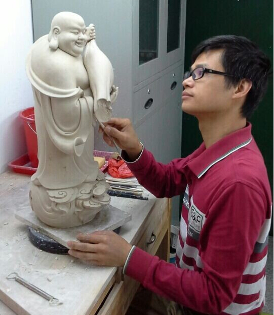 陳廷實(shí),1977年出生于中國瓷都·德化,福建省工藝美術(shù)師、高級工藝美術(shù)師、中國陶瓷藝術(shù)家、泉州禪藝善館執(zhí)行社長,泉州市工藝美術(shù)協(xié)會第一屆理事會理事。從事陶瓷設(shè)計(jì)雕塑堆雕創(chuàng)作生產(chǎn)21年,主要創(chuàng)作以觀音、彌勒和古代神像人物為主。造型務(wù)實(shí)、瀟灑,質(zhì)感強(qiáng)烈、并恰當(dāng)?shù)剡\(yùn)用了線條在瓷雕中的表現(xiàn)力,結(jié)合德化陶瓷“白”、“潤”、“飽滿”等特性更好的加以展示;從立意到表現(xiàn)手段,在繼承傳統(tǒng)基礎(chǔ)上敢于創(chuàng)新。榮獲福建省泉州市廣播電視臺《海絲名家》冠名研究所。