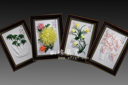 山峰珍品由鄭國(guó)峰專注設(shè)計(jì),創(chuàng)作,其中花苑佳作,近年來(lái)得到社會(huì)各界人士的關(guān)愛(ài)和收藏。中國(guó)白作品《繁花似錦》(18″大花籃)曾經(jīng)作為唐山市陶瓷博覽會(huì)禮品贈(zèng)之有關(guān)國(guó)家領(lǐng)導(dǎo)人;《梅蘭竹菊》出品之后,贏得良好的市場(chǎng)效應(yīng),并受到福建省版權(quán)專利保護(hù),現(xiàn)限量生產(chǎn);《竹報(bào)平安》面市以來(lái),深受歡迎,并申請(qǐng)專利(專利號(hào):200530062542.3),現(xiàn)也限量生產(chǎn);《女神》,《繁花似錦》壁掛(45×88cm)獲福建省工藝美術(shù)大師暨第四屆工藝新品“爭(zhēng)艷杯”銀獎(jiǎng)和銅獎(jiǎng)。