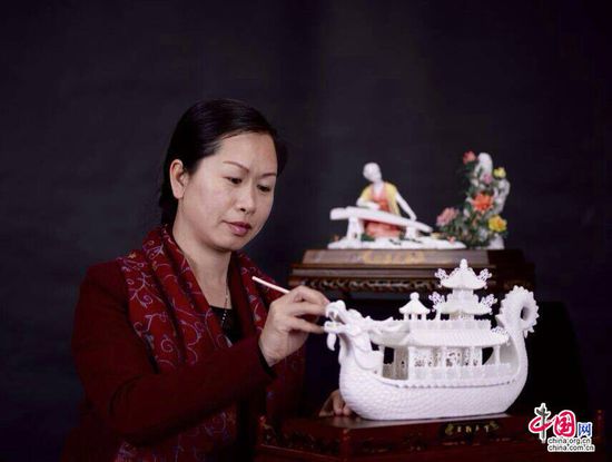 看她做瓷,會忘我;聽她講學(xué)瓷故事,會入迷。在福建德化的兩天里,我們都在看她做瓷,聽她講各種瓷的故事,一起感受德化陶瓷的獨(dú)特魅力。她,就是福建省德化金鳳祥工藝有限公司藝術(shù)總監(jiān)曾素妹。這位溫婉大氣的女子,對瓷有著無比的熱愛,在交流時,時常流露出對德化陶瓷綿綿的情意。
