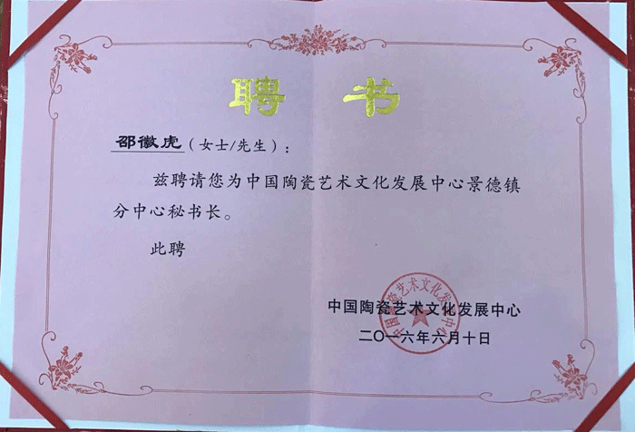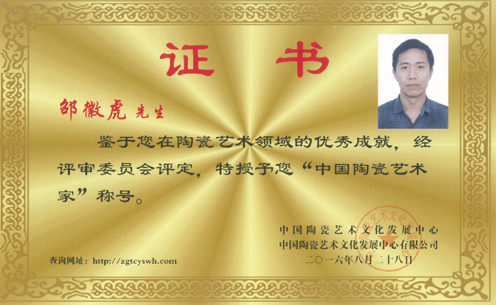 邵徽虎,筆名“羽墨”,1978年出生于景德鎮(zhèn),畢業(yè)于陶瓷大學(xué),入行后受各名家指點(diǎn),現(xiàn)為中國陶瓷藝術(shù)文化發(fā)展中心景德鎮(zhèn)中心秘書長,景德鎮(zhèn)陶瓷設(shè)計(jì)研究院主創(chuàng)設(shè)計(jì)師,中國陶瓷藝術(shù)家,江西省高級(jí)陶瓷美術(shù)師、工藝美術(shù)師、技師,品墨軒陶瓷藝術(shù)創(chuàng)始人,中國中青年陶瓷藝術(shù)家,江西省工藝美術(shù)協(xié)會(huì)會(huì)員,陶瓷商會(huì)會(huì)員,民間美術(shù)家協(xié)會(huì)會(huì)員。