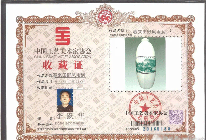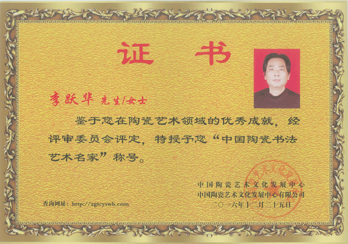 2016年被中國陶瓷藝術文化發(fā)展中心評審委員會評定為“中國陶瓷書法藝術名家”