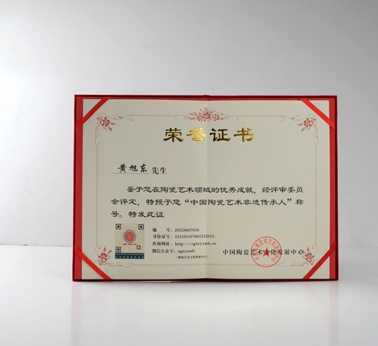 黃旭東,出生于1978年,中國當代工藝美術大師、中國陶瓷藝術非遺傳承人、中國陶瓷藝術家、高級工藝美術大師,滿懷著對陶瓷藝術的熱愛與向往,于2000年起從事陶瓷的藝術創(chuàng)作,經(jīng)多位名家指導,再傳承傳統(tǒng)工藝技藝的基礎上不斷做創(chuàng)新的研究探索,結合新材料的運用,再浮雕圖案繪制領域方面形成了獨特的創(chuàng)新,并融合自身對美學的理解,另辟蹊徑獨具異格,其作品設計精美、構思巧妙、精致立體,富有極深的藝術感染力,在各大賽事評選中屢獲殊榮,深受各界一致好評。