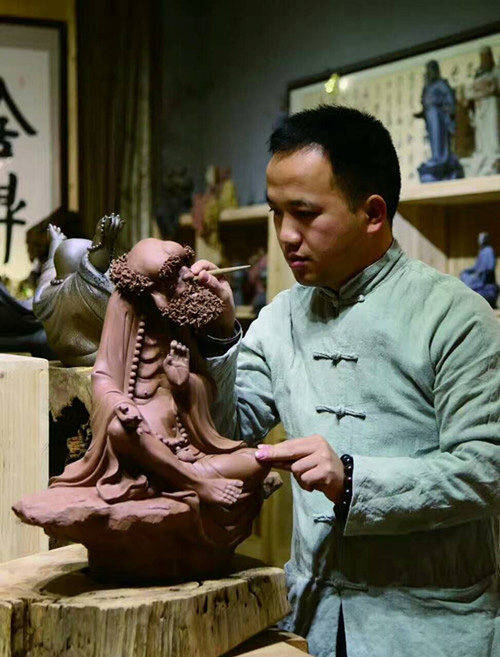 個人簡介: 陳建評,1983年出生,福建德化人。畢業(yè)于德化陶瓷職業(yè)技術(shù)學(xué)校,進修于集美大學(xué)工藝美術(shù)學(xué)院雕塑系、景德鎮(zhèn)陶瓷學(xué)院雕塑藝術(shù)設(shè)計專業(yè)。注重進修,博采眾長,善于借鑒宗教精神融合于藝術(shù)創(chuàng)作。現(xiàn)為德化縣人大代表,福建省雕刻藝術(shù)家協(xié)會理事,福建省工藝美術(shù)師,中華佛教藝術(shù)名家,中國工藝美術(shù)學(xué)會會員,中國陶瓷藝術(shù)家,閩派青年雕刻藝術(shù)大師,建評陶坊藝術(shù)總監(jiān)。