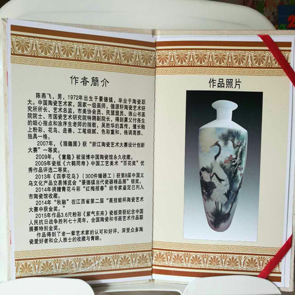陳燕飛,1972年生于江西景德鎮(zhèn),畢業(yè)于陶瓷職業(yè)大學(xué),市美術(shù)協(xié)會會員,民盟盟員,珠山書畫院院士,市陶瓷藝術(shù)研究院特聘副院長,國家一級技師,得到舅父付堯生的細心指導(dǎo)和涂序生老師的指教,吳勝華的真?zhèn)鳌?/p>