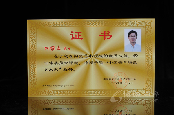 2016年9月18日獲評(píng)“中國青年陶瓷藝術(shù)家”
