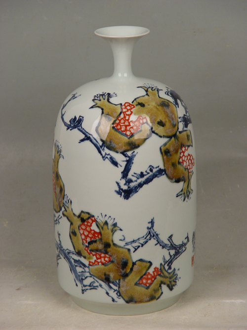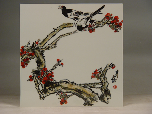 他所畫的瓷瓶和瓷板,很快在商業(yè)價值上與景德鎮(zhèn)一流大師不相上下,并以令同行艷羨的身價得到藏家追捧。他的第一件大型作品、高1.8米的青花梅瓶,即被中國建設(shè)銀行以26萬元的價格收藏。