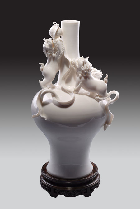1、《珍品釉藝美人瓶》,創(chuàng)作于2004年,榮獲上海第一屆民間藝術(shù)博覽會(huì)金獎(jiǎng);