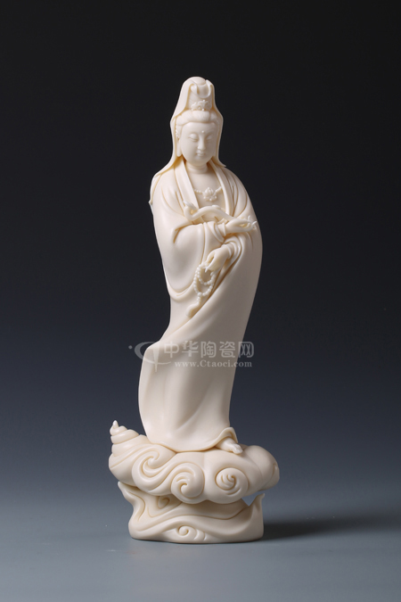 《祥云捻珠如意觀音》(玉黃瓷)林建勝