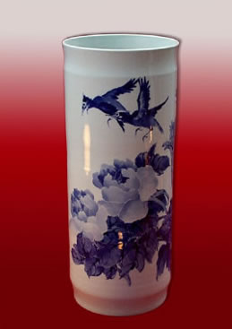 以青花分水簡潔雄渾之風的筆調(diào), 十分成功地再現(xiàn)了花中之王的端莊富麗,整個畫面