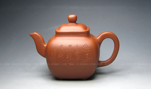 寓圓于方、敦實(shí)莊重的經(jīng)典造型,再現(xiàn)了清代陳鳴遠(yuǎn)的壺藝風(fēng)格。曲流舒展,環(huán)把穩(wěn)勢(shì),壺底下附四餅形底足。制作精細(xì),質(zhì)樸大方,結(jié)構(gòu)嚴(yán)謹(jǐn),見工見力。蓋面微突,口蓋吻合緊湊,蓋頂與壺身形制對(duì)應(yīng),端莊穩(wěn)重中見挺拔瀟灑。