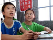 北川縣孩子們在帳篷學(xué)校里堅