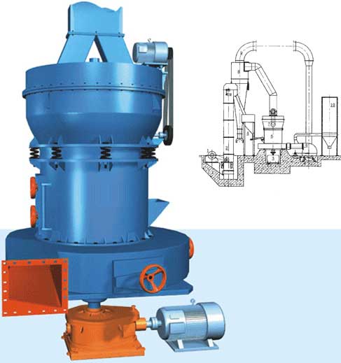 TGM160系列超壓梯形磨粉機是我公司磨粉機專家在長期的磨粉機研發(fā)經(jīng)驗的基礎(chǔ)上,引進世界一流的工業(yè)制粉技術(shù),組織大量的磨粉機技術(shù)專家和相關(guān)工作人員,經(jīng)過精心設(shè)計,實驗和改進開發(fā)出的世界領(lǐng)先水平的工業(yè)磨粉機。 該機型采用了梯形工作面、柔性聯(lián)結(jié)、磨輥聯(lián)動增壓等多項國家專利技術(shù),完全克服了傳統(tǒng)工業(yè)磨粉機在使用范圍、產(chǎn)量、細度、能耗、使用壽命等方面的缺陷,是雷蒙磨、高壓懸輥磨、球磨機等傳統(tǒng)磨粉機的最佳替代品。 TGM160系列超壓梯形磨粉機在設(shè)計中充分考慮脫硫制粉的需要,可與脫硫設(shè)備完美匹配,從而提高脫硫效率,成為了國內(nèi)外脫硫制粉的首選設(shè)備。目前該機型已廣泛使用于電力、礦山、冶金、化工、鋼鐵、建材、煤炭等行業(yè),產(chǎn)生了巨大的經(jīng)濟和社會效益。 主要是用于礦山、建材、化工、冶金、火電、煤炭等行業(yè)粉磨莫氏硬度在9.3級以下,濕度在6%以下的各種非易燃易爆礦產(chǎn)物料,成品細度可在30-400目任意調(diào)節(jié),例如水泥(生熟料)、石英、長石、方解石、白云石、石墨、螢石、硅灰石、磷礦石、鈣鎂磷肥、煤、煤矸石、礦渣、鋯英砂、滑石、花崗巖、鉀長石、大理石、重晶石、陶瓷、玻璃等千余種物料粉磨加工。 TGM160型超壓梯形磨粉機主機工作過程是通過減速機帶動中心軸轉(zhuǎn)動,軸的上端連接著磨輥吊架,架上裝有磨輥裝置并形成擺動支點,磨輥裝置不僅圍繞中心軸回轉(zhuǎn),還圍繞磨環(huán)公轉(zhuǎn),磨棍本身因摩擦作用而自轉(zhuǎn),磨輥吊架下裝有鏟刀系統(tǒng),其位置處于磨輥下端,鏟刀與磨輥同轉(zhuǎn)過程中把物料拋起喂入磨輥與磨環(huán)之間,形成墊料層,該料層受磨輥旋轉(zhuǎn)產(chǎn)生向外的離心力(即擠壓力)碾壓,達到制粉的目的。