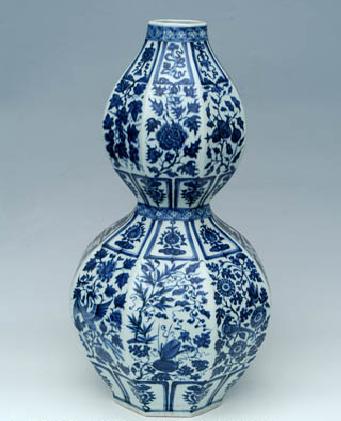 仿元青花花卉草蟲(chóng)紋八方葫蘆瓶