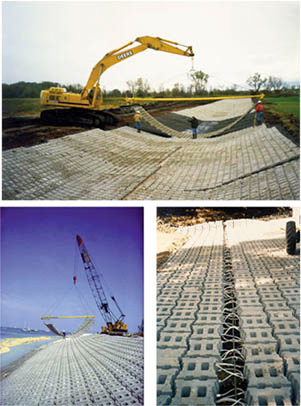 2.抗流體沖擊力強!高速水流以及其它惡劣環(huán)境下保持完整面層,不被侵蝕。與土工織物配合使用,可以有效管涌崩岸及泥沙流失。