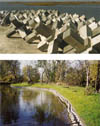 *杰克多面體 一種高穩(wěn)定性、高透水性、超強聯(lián)鎖的特殊造型濱水工程構(gòu)件。任意方式放置均形成穩(wěn)定的三角形支架結(jié)構(gòu),有效阻止水流沖刷深淘堤岸坡腳。 l 用于橋墩底部或水下光纜保護時,能夠抵抗高速水流的漩渦效應,起到有效的保護作用。 l 用于河堤、湖濱或海堤海岸時,穩(wěn)定的結(jié)構(gòu)可抵抗高速水流的沖刷,起到有效的消浪作用。并可在眾多聯(lián)體間隙中填上適當土壤種植花草樹木美化環(huán)境。 l 用于抗洪救災中處理種種崩岸,可代替?zhèn)鹘y(tǒng)拋石等方案,是最有效、最快捷、最經(jīng)濟的方案之一。 香根草 香根草是一種適應性強、生物量大、易種好管的粗放型禾木本科多年生植物。其根系發(fā)達、縱向伸長可達2-5米,同時相互交錯形成網(wǎng)狀根系,具有強大的固土能力。平均抗拔力為75Mpa,相當于鋼筋抗拉強度的六分之一。香根草耐鹽堿抗水淹,對土壤廢水中的重金屬、有機磷、氮化合物和放射性物質(zhì)具有很強吸收作用,同時種植香根草絕白蟻對壩堤的危害。因此可作穩(wěn)定斜坡、減經(jīng)侵蝕、凈化環(huán)境的首選產(chǎn)品,與護坡塊體結(jié)合形成最有效的生態(tài)堤壩。 防浪護作用的主要試驗: 美國Tetra Tech有限公司。1981 研究鉸接式水工砌塊護坡系統(tǒng)在各種波浪作用下的工作性能 荷蘭代人特水利學實驗室。1983 確定鉸接式水工砌塊護坡系統(tǒng)所能承擔的極限波浪 美國Tekmarine有限公司。1984 鉸接式水工砌塊防浪護坡大型模型試驗 用于公路、鐵路護坡的優(yōu)點 l 深根的錨固作用:植物和垂直根系可起到預應力錨桿的作用。 l 深根的加筋作用:草根可使土體強度提高。 l 降低坡體孔隙水壓力:植物通赤吸收和蒸騰坡體內(nèi)水分,從而達到了穩(wěn)定邊坡體的目的。 l 降雨截留,消弱濺蝕:植被能使部分降雨在到達破面之前被截留,使其重新蒸發(fā),從而減少土粒的飛濺。 l 控制土粒流失:植被能抑制地表徑流并削弱雨滴濺蝕,從而控制土粒流失,恢復被破壞的生態(tài)環(huán)境;邊坡植物的存在可使被破壞的生物鏈又逐漸形成,從而可慢慢恢復到原始自然環(huán)境狀態(tài)。 l 降低噪聲、光污染,使行車更安全:植被能吸收刺耳的聲音,多方位反射太陽光線,從而保證行車安全。 l 促進有機污染物的降解, 凈化大氣,調(diào)節(jié)小氣候。 |