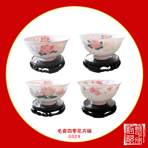 毛瓷四季花卉碗