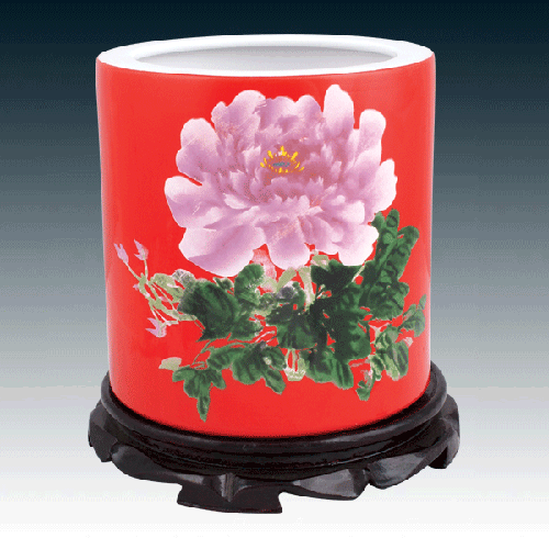 筆筒-牡丹
