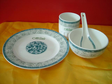 鎂質(zhì)強(qiáng)化瓷消毒餐具,常規(guī)4件套,只加簡(jiǎn)單標(biāo)志,價(jià)格調(diào)整為3.60元/套.