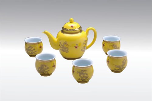 “財神黃” 發(fā)財?shù)狞S “財神黃” 寓意招財納福,財源滾滾,富貴大氣。黃色本身就是財富的象征 黃色表示宇宙中的“中央土” 五行當中,“土為尊” 象征君權、尊崇 “財神黃” 凸現(xiàn)黃色釉的天然神韻與尊貴之氣 “財神”招財象征與代表財富‘黃”色融合 更是財氣大增的極品 一壺配五杯 融合浮雕金工藝與單色釉工藝 器形上蘊涵[九五至尊]文化與寓意 |