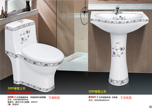 紅色線條彩金 雙按虹吸式座便器 紅色線條彩金 立柱盆 |