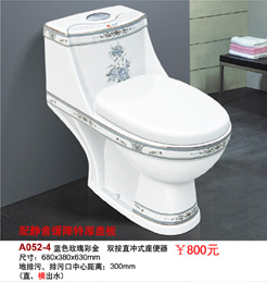 A052-4 藍色玫瑰彩金 雙按直沖式座便器 尺寸:680*380*630mm 地排污,排污口中心距離 300MM (直,橫出水) |