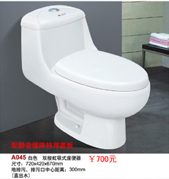 白色雙按虹吸式座便器 700元 尺寸:720*420*670mm 地排污,排污口中心距離:300mm (直出水) |
