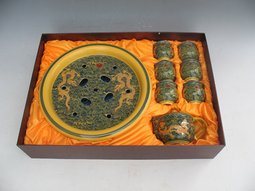 黃釉海浪金龍13寸(套組)