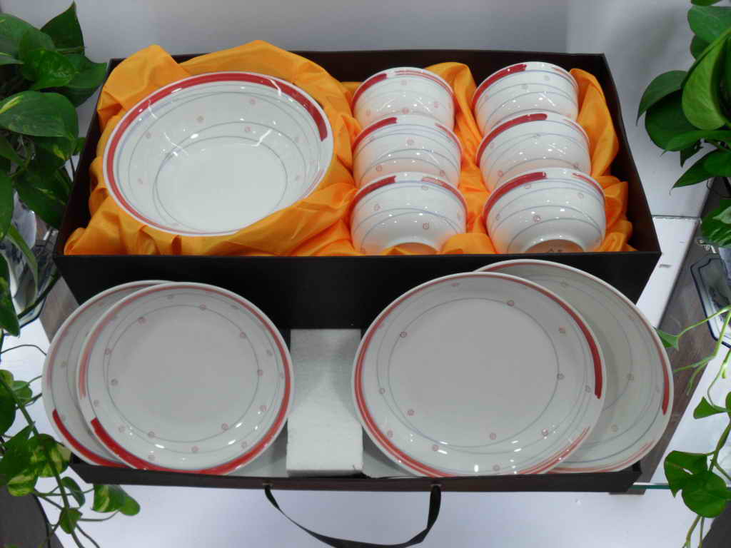 “新安銀葉”鎂玉瓷7件套餐具套裝,含1個(gè)8寸飯盤(pán),6個(gè)4.25寸碗!