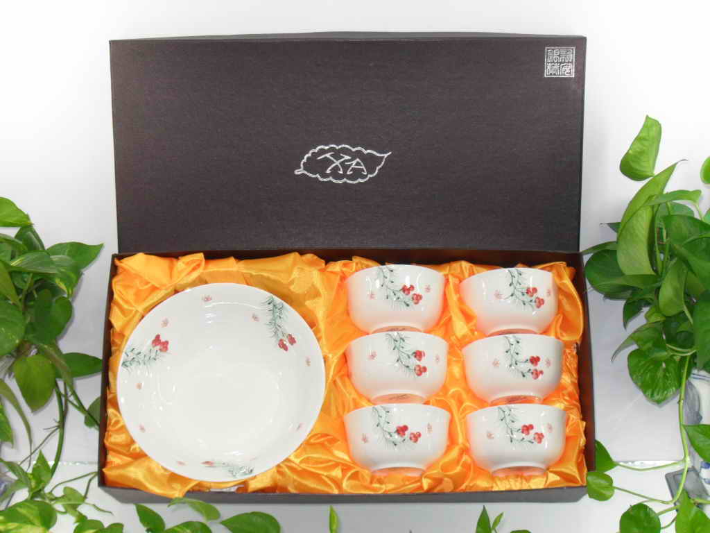 “新安銀葉”鎂玉瓷7件套餐具套裝,含1個8寸飯盤,6個4.25寸碗!