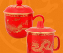 中國紅瓷,紅瓷 龍鳳對杯gc022-02H